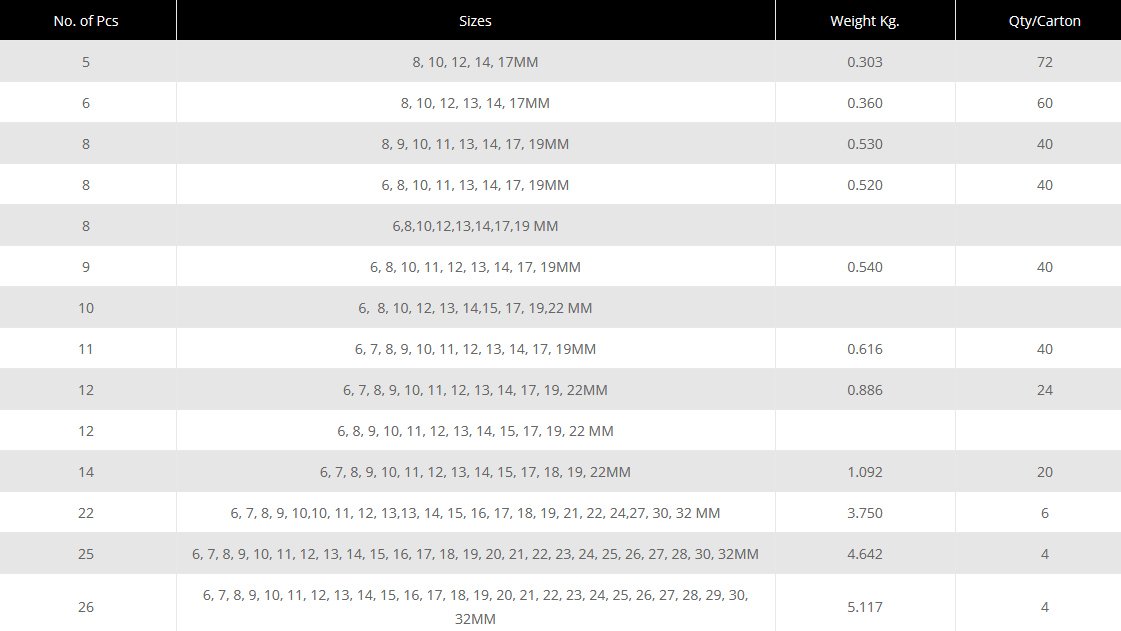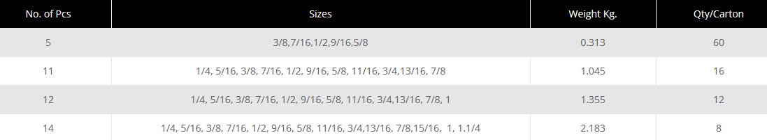 Set in SAE Sizes
